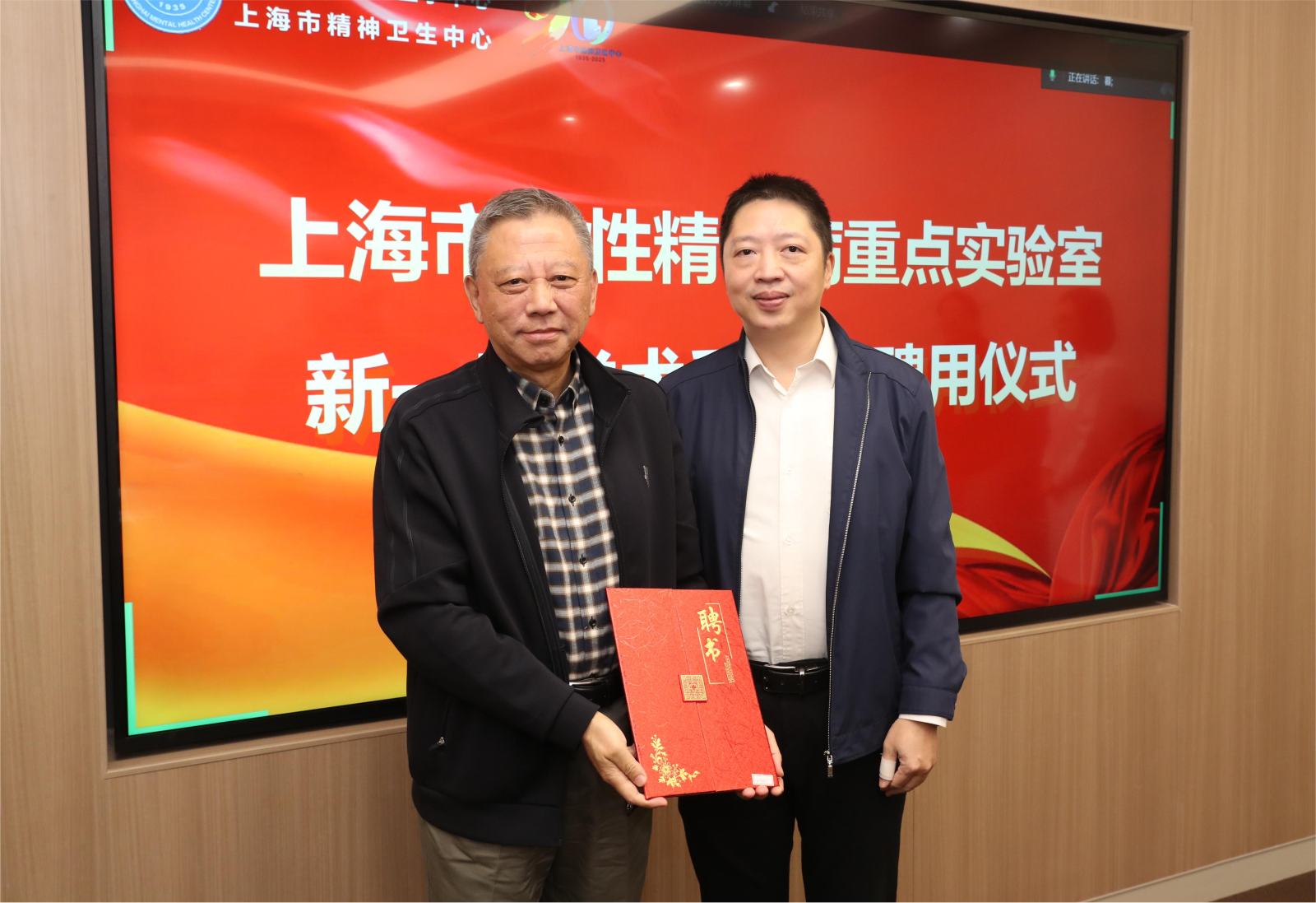 会后进行了上海市重性精神病重点实验室新一届学术委员会聘用仪式,由肖俊杰书记和王以政院士为各位学术委员会委员颁发聘书。