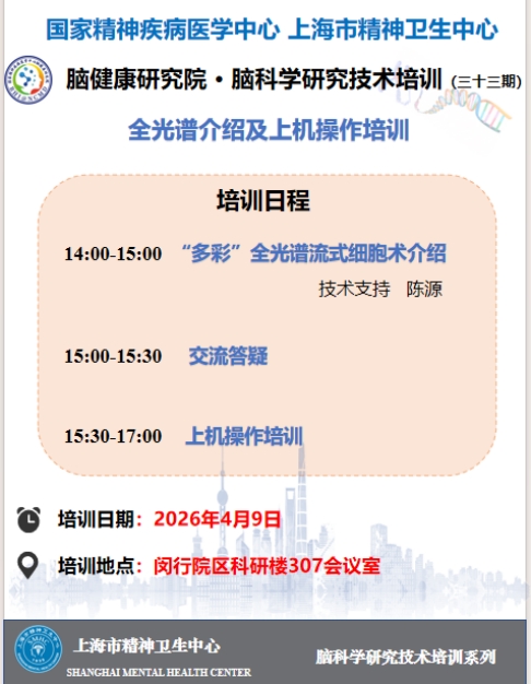 上海市精神卫生中心脑健康研究院基础研究平台将举办第三十三期脑科学研究技术培训,聚焦全光谱流式细胞术。
