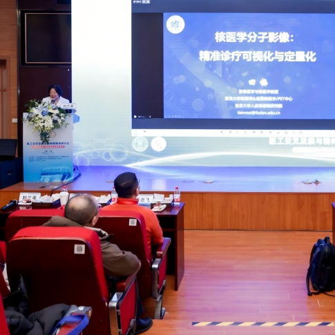 上海交通大学化学化工学院、张江高等研究院研究员田长麟教授介绍了核磁技术并分享了多肽靶向神经精神疾病受体的相关研究进展;上海市精神卫生中心研究员唐莺莹就精准经颅磁刺激在精神疾病的临床治疗现状进行了报告。